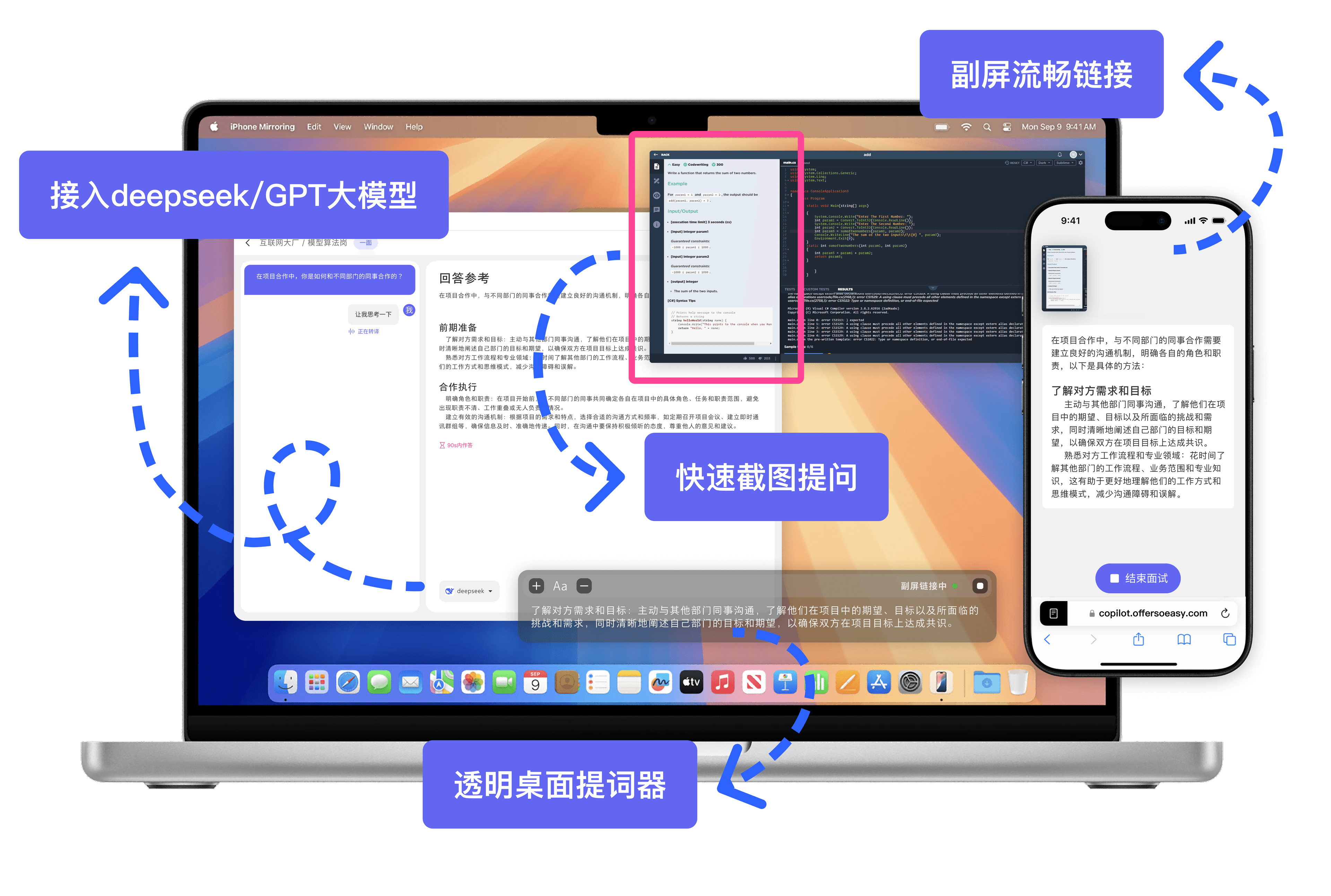 面试支持根据面试官提问自动提示,笔试支持截图获取参考答案
